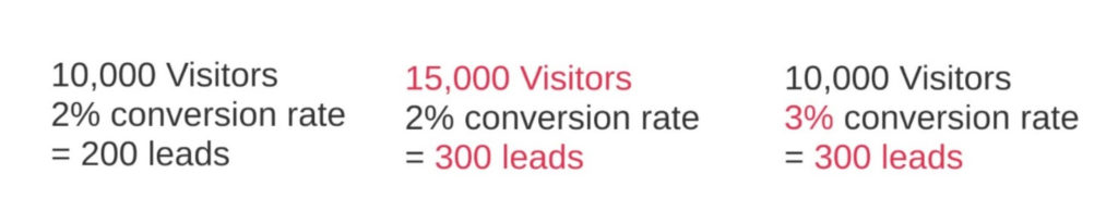 If you have a website that receives 10,000 visits each month and has a 2 percent conversion rate, then you would expect to get 200 new leads every month.